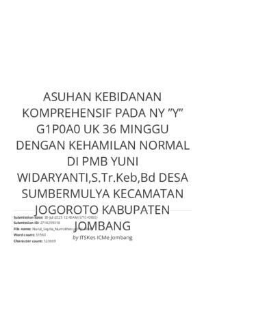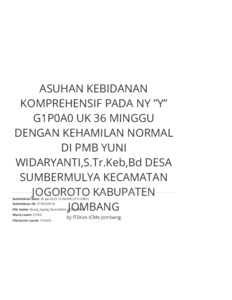 ASUHAN KEBIDANAN KOMPREHENSIF PADA NY ”Y” G1P0A0 UK 36 MINGGU DENGAN KEHAMILAN NORMAL DI PMB YUNI WIDARYANTI,S.Tr.Keb,Bd DESA SUMBERMULYA KECAMATAN JOGOROTO KABUPATEN JOMBANG_compressed.pdf - Published Version Download (7MB) | Preview |