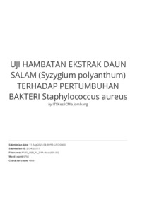 UJI HAMBATAN EKSTRAK DAUN SALAM (Syzygium polyanthum) TERHADAP PERTUMBUHAN BAKTERI Staphylococcus au (1).pdf - Published Version Download (5MB) | Preview |