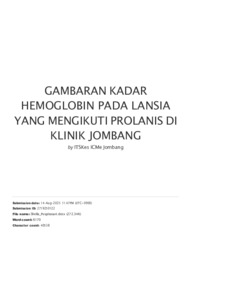 GAMBARAN KADAR HEMOGLOBIN PADA LANSIA YANG MENGIKUTI PROLANIS DI KLINIK JOMBANG.pdf - Published Version Download (4MB) | Preview |