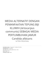 MEDIA ALTERNATIF DENGAN PEMANFAATAN TEPUNG BIJI KLUWIH (Artocarpus communis) SEBAGAI MEDIA PERTUMBUHAN .pdf - Published Version Download (9MB) | Preview |